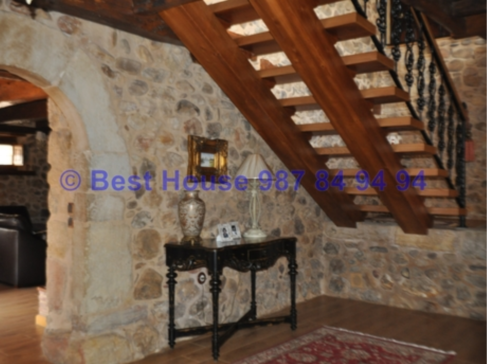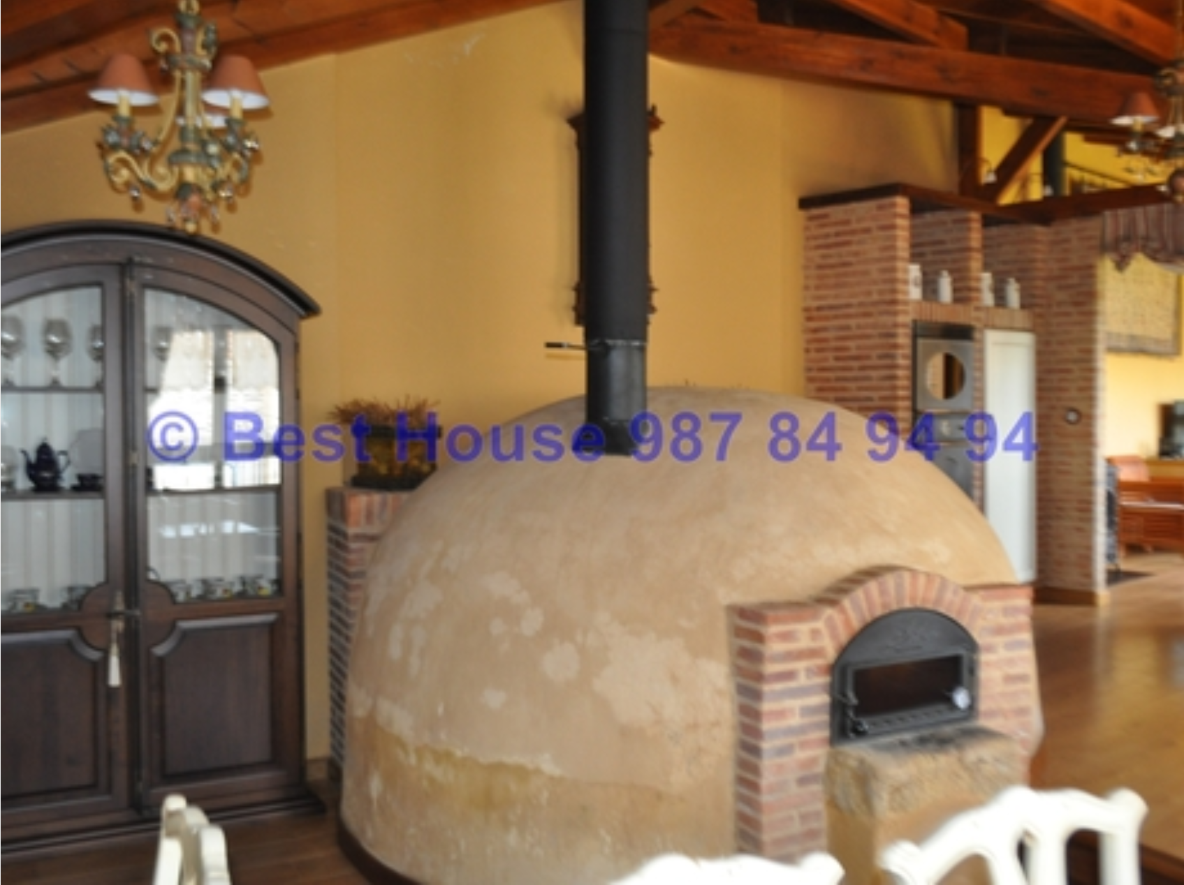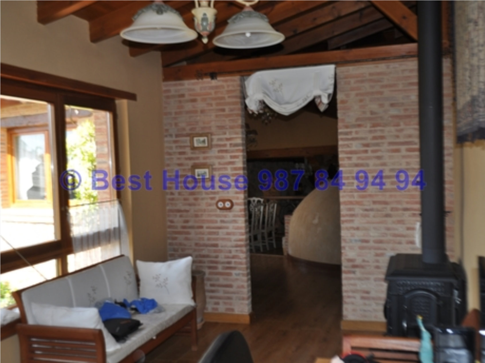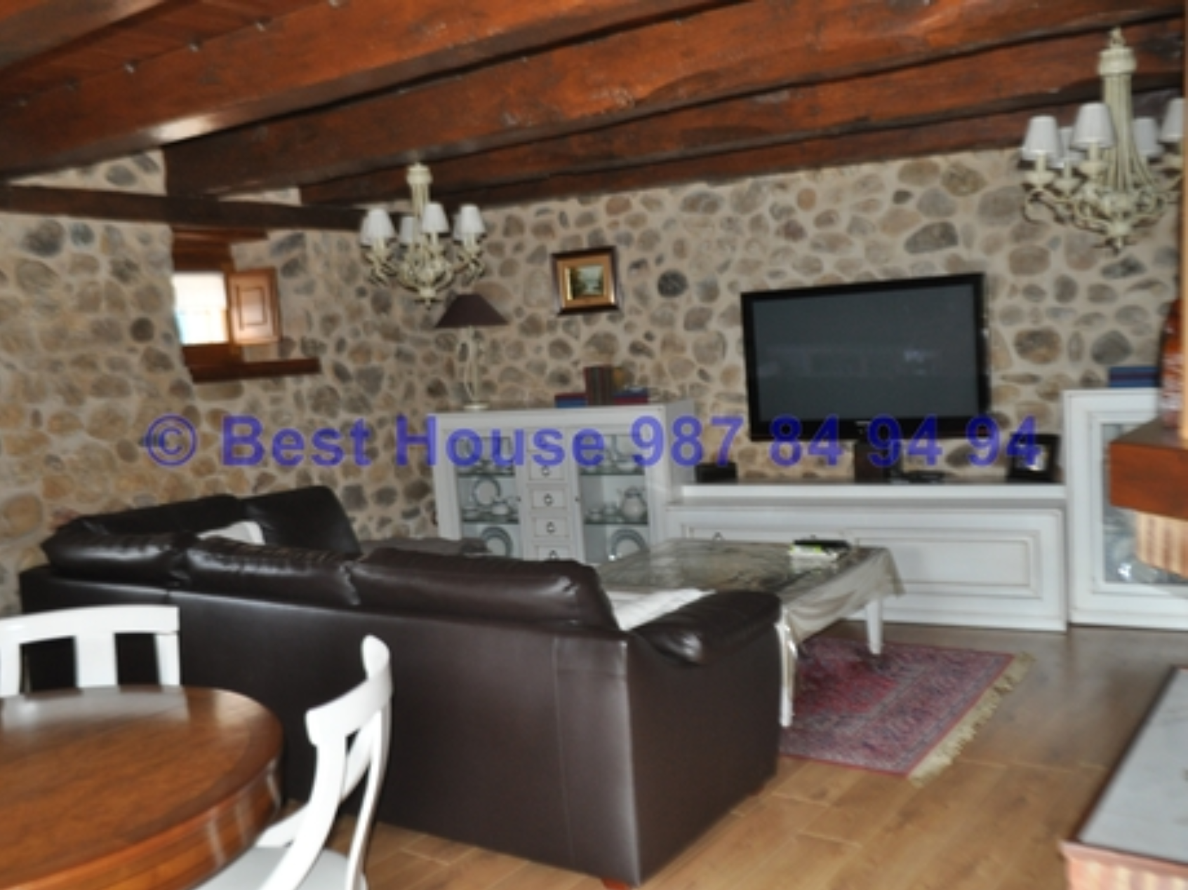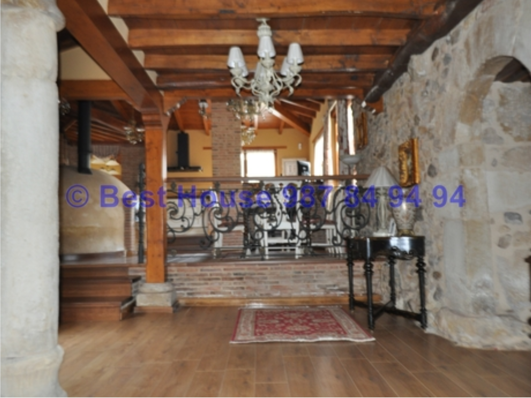 Casa de dos plantas, totalmente amueblada y con calidades y acabados de lujo, con vigas y carpintería interior en madera, muros de piedra, calefacción de gasóleo por suelo radiante, horno de barro en la cocina, bodega, piscina cubierta, jardín, etc.