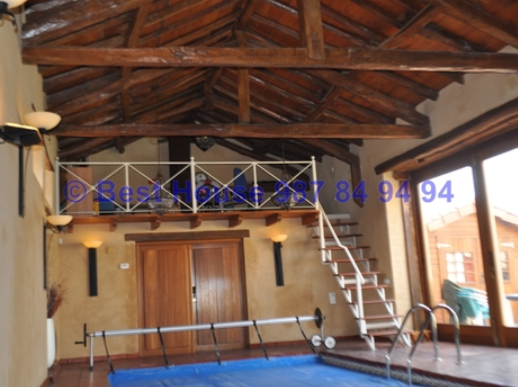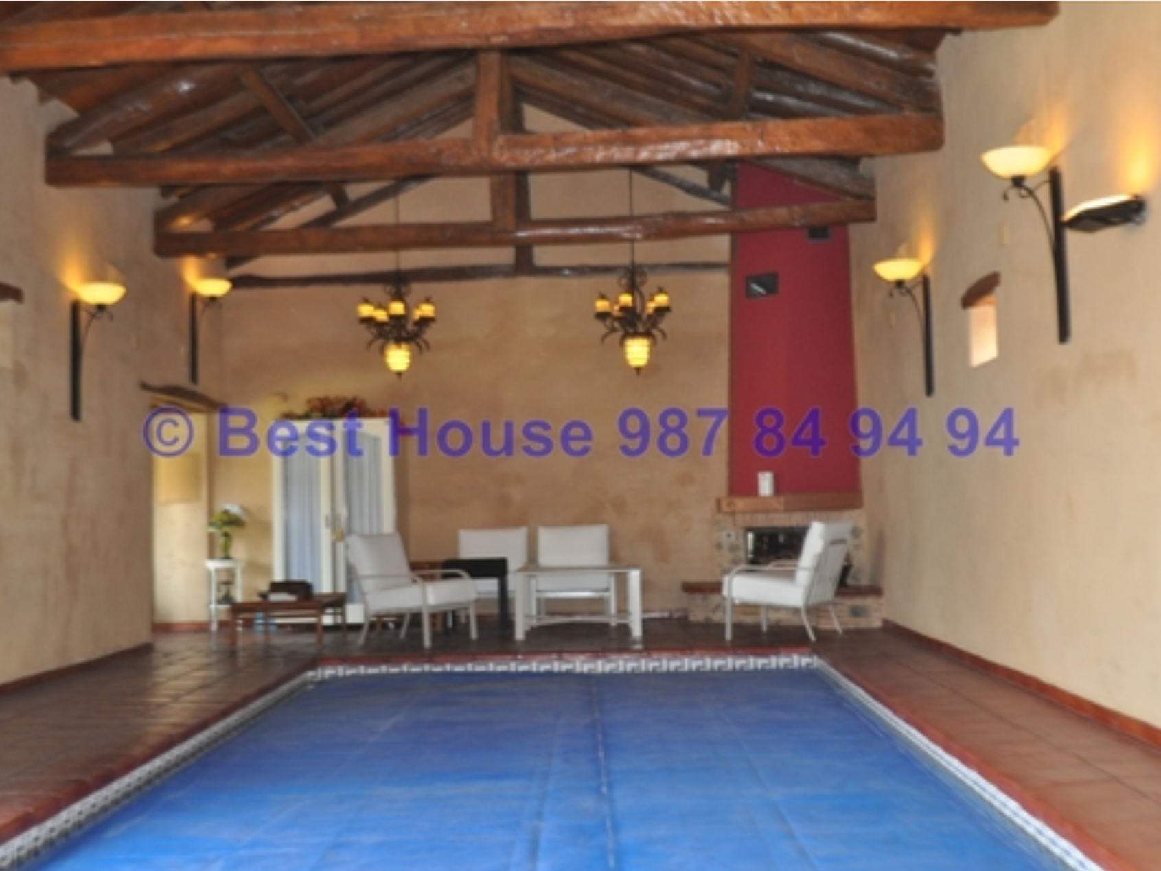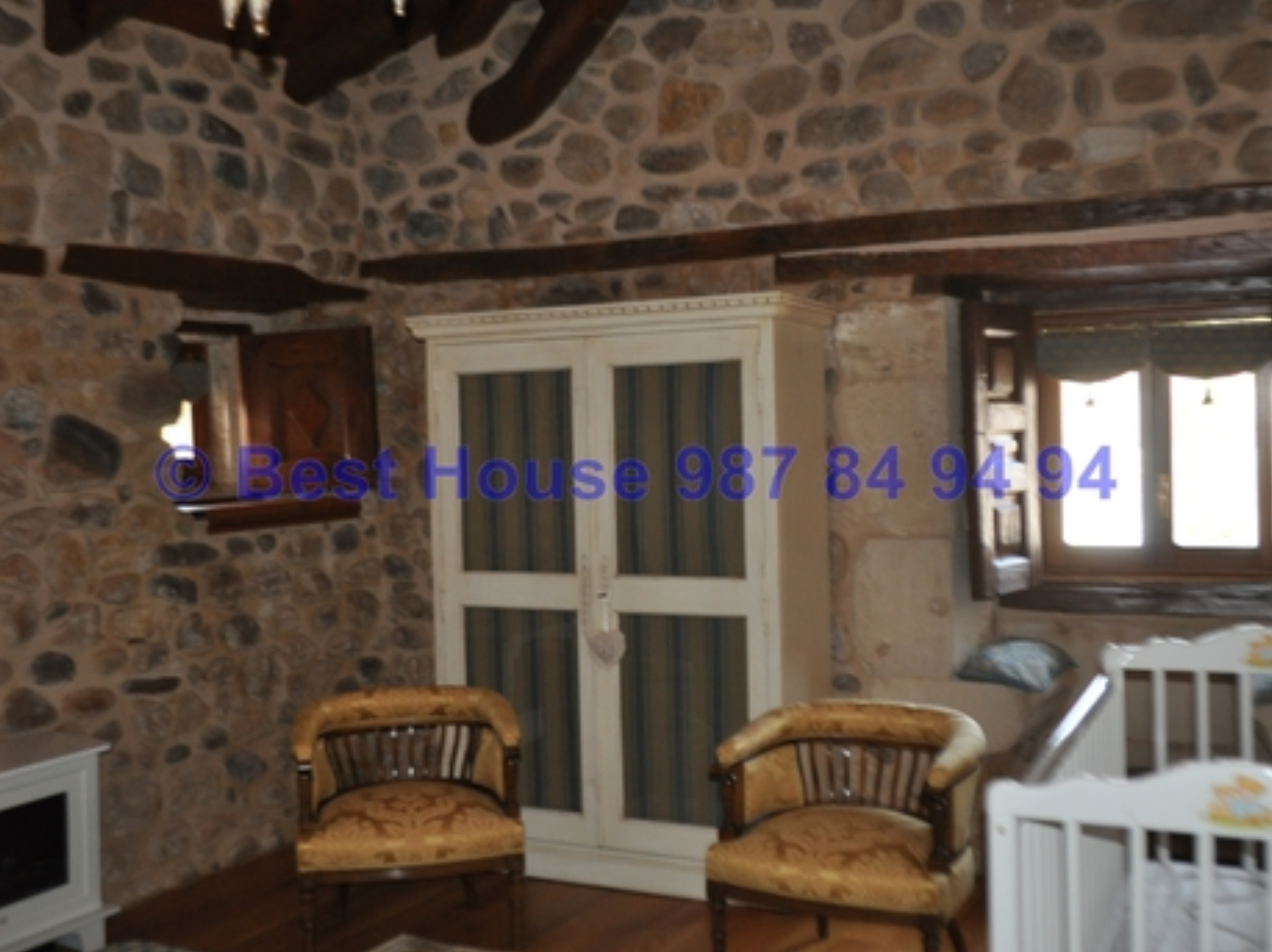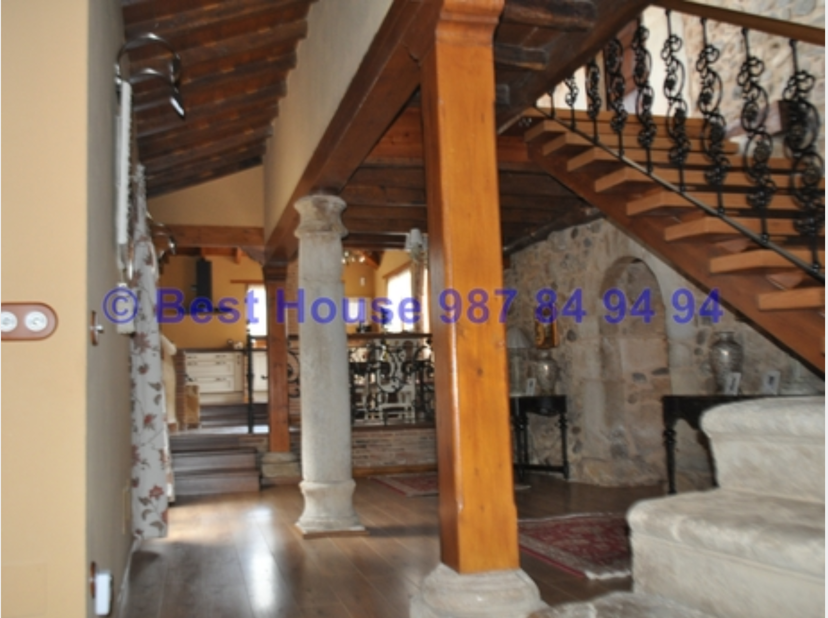 Casa de dos plantas, totalmente amueblada y con calidades y acabados de lujo, con vigas y carpintería interior en madera, muros de piedra, calefacción de gasóleo por suelo radiante, horno de barro en la cocina, bodega, piscina cubierta, jardín, etc.