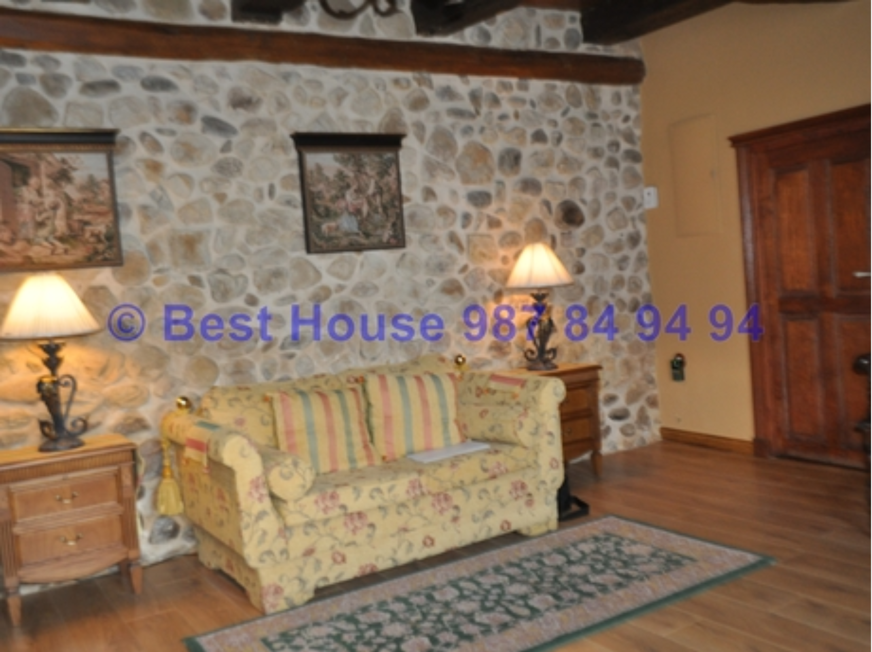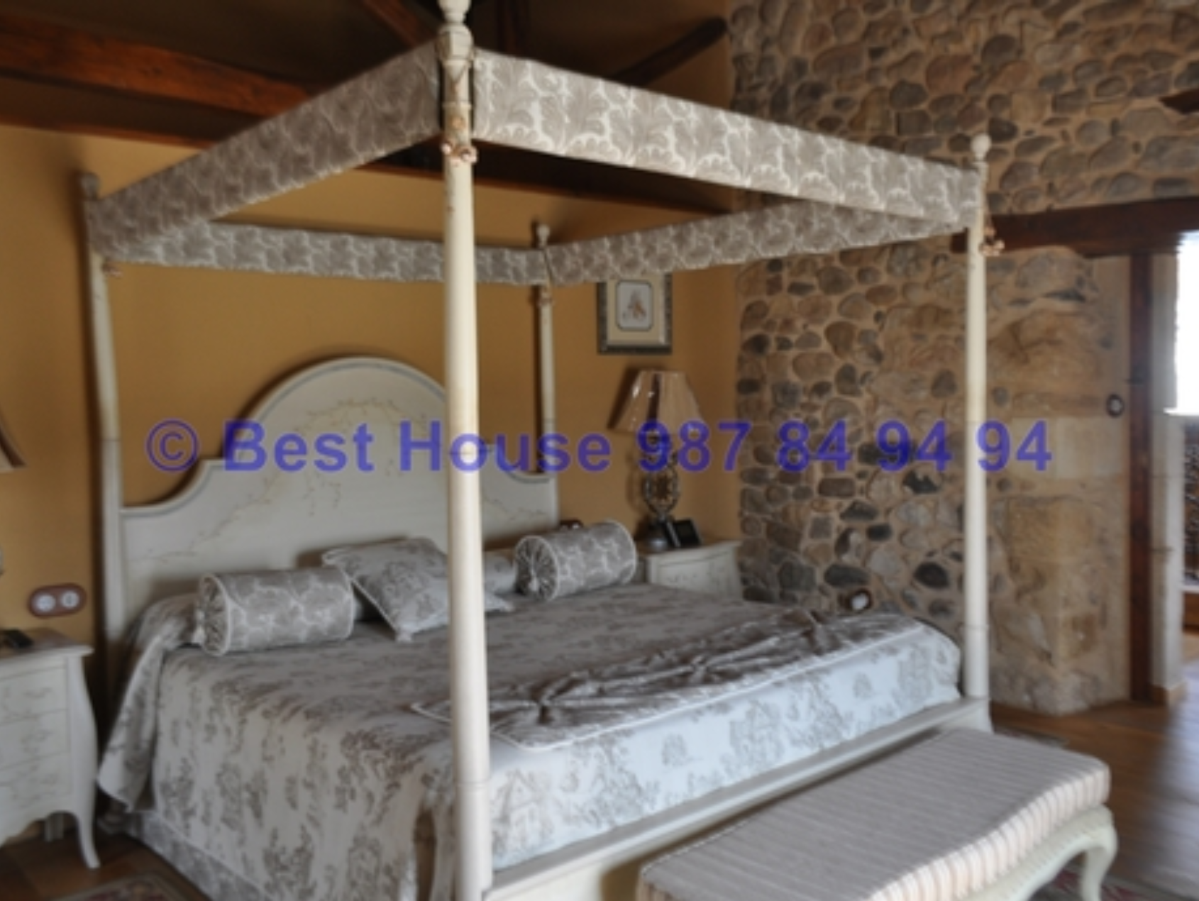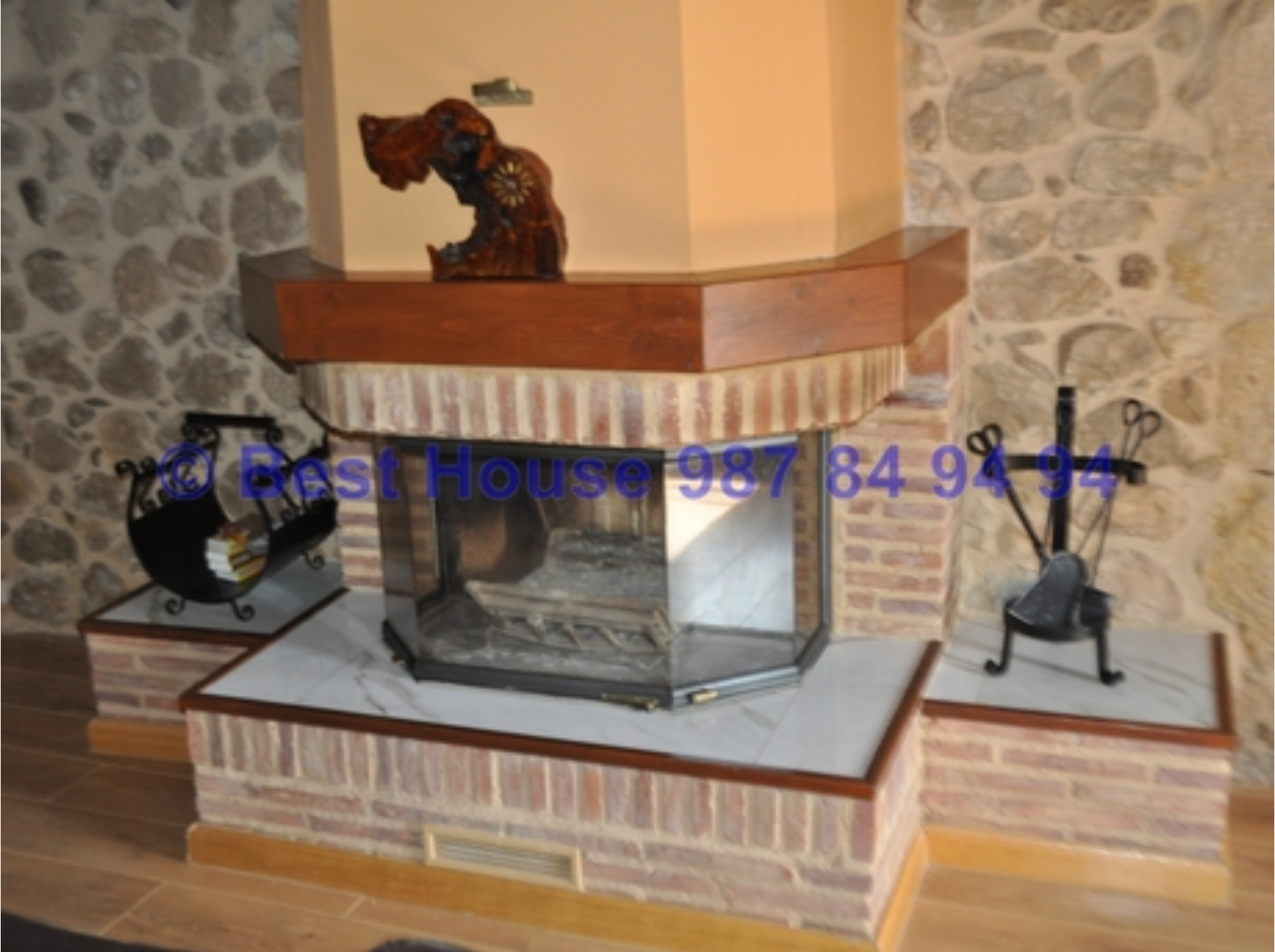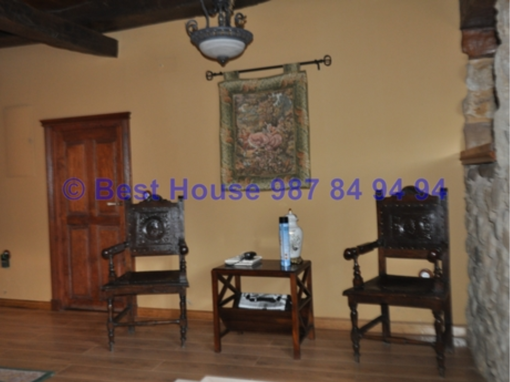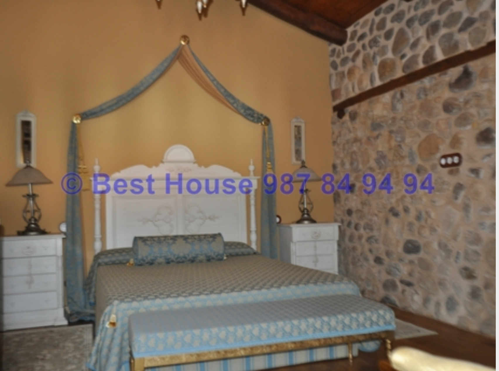 Casa de dos plantas, totalmente amueblada y con calidades y acabados de lujo, con vigas y carpintería interior en madera, muros de piedra, calefacción de gasóleo por suelo radiante, horno de barro en la cocina, bodega, piscina cubierta, jardín, etc.