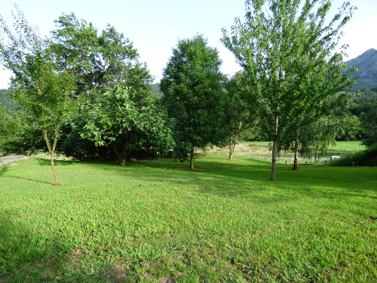 Jardín alrededor de la vivienda y porche para de guarda de vehículos.