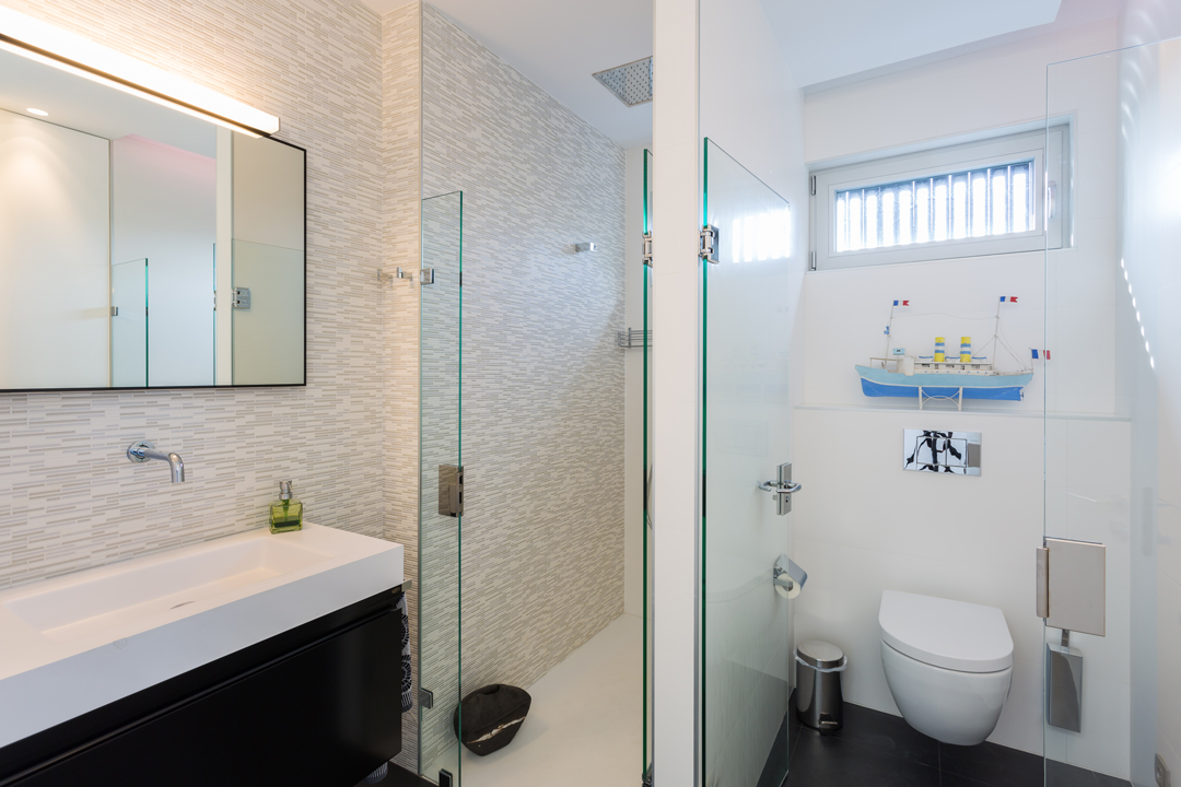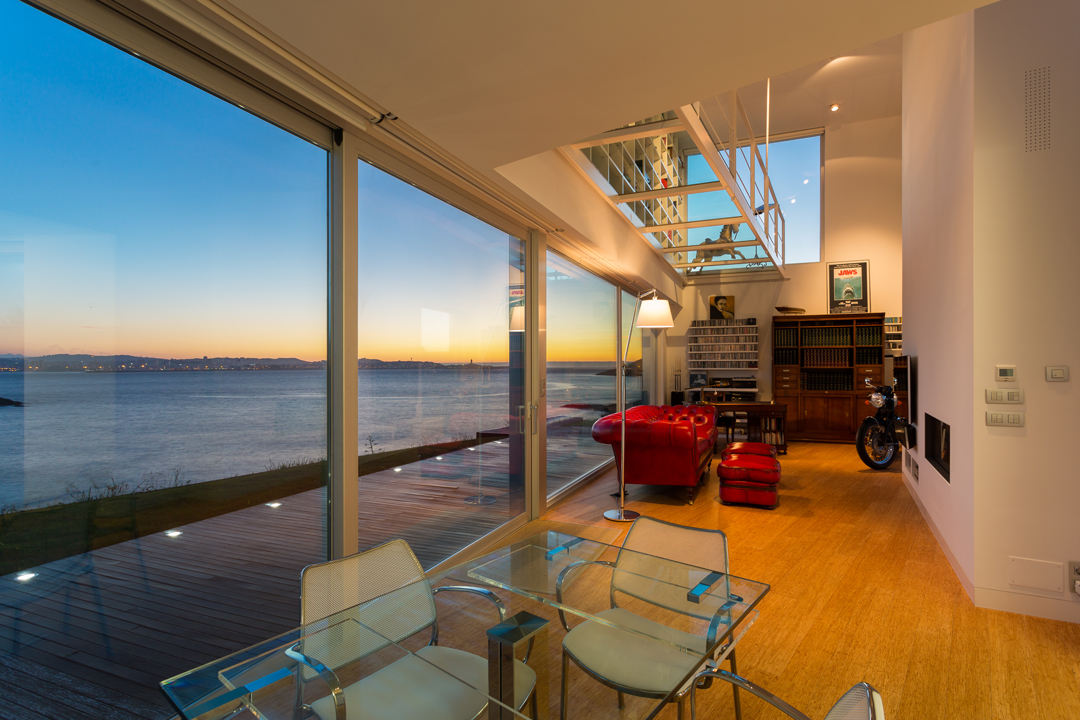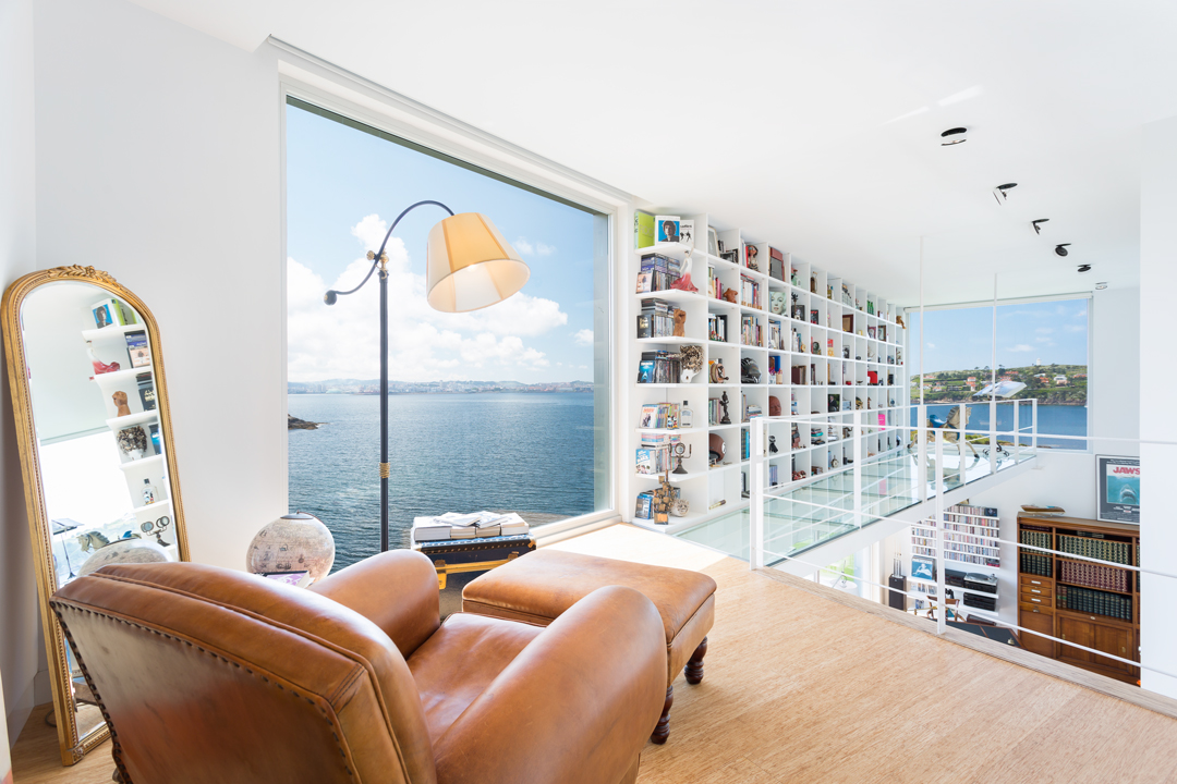 Cada planta tiene 1 cuarto de baño completo y 1 dormitorio. Cuenta con dos cocinas completas totalmente equipadas con una exclusiva linea de electrodomésticos en planta baja y sotano. 1 hall, 1 amplio vestidor, 2 salones, 1 pasarela-libreria, zona de lectura o trabajo con inigualables vistas al mar.