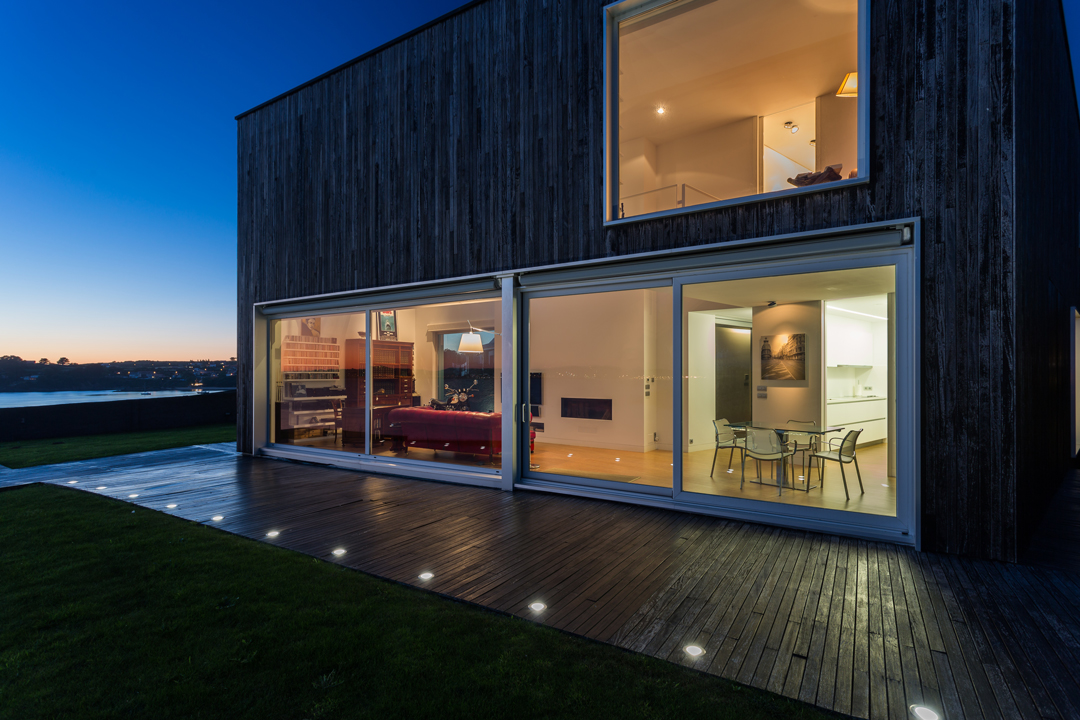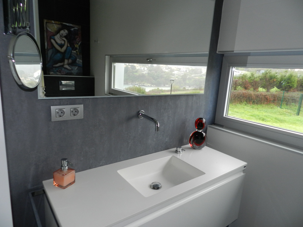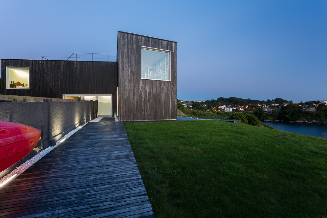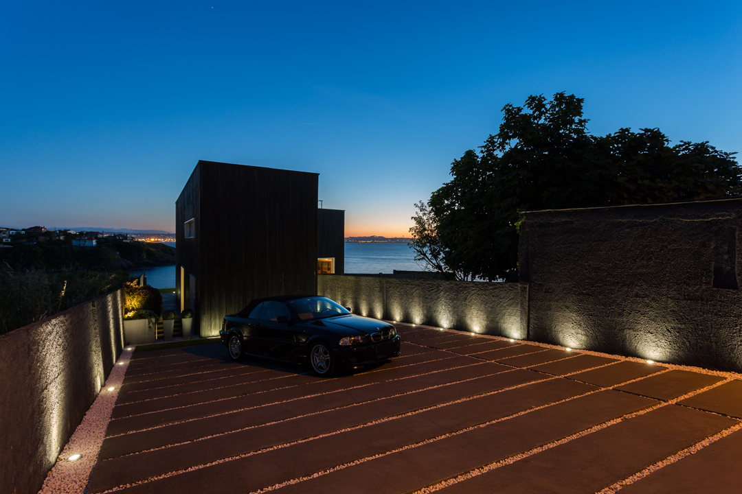 Espacio de aparcamiento para tres o cuatro coches. Revestimientos exteriores en madera de elondo y doble acristalamiento de seguridad con protección solar. Sofisticados elementos de seguridad, acesso a la parcela por digitación con puerta automática, tres porteros con pantalla uno por planta.
